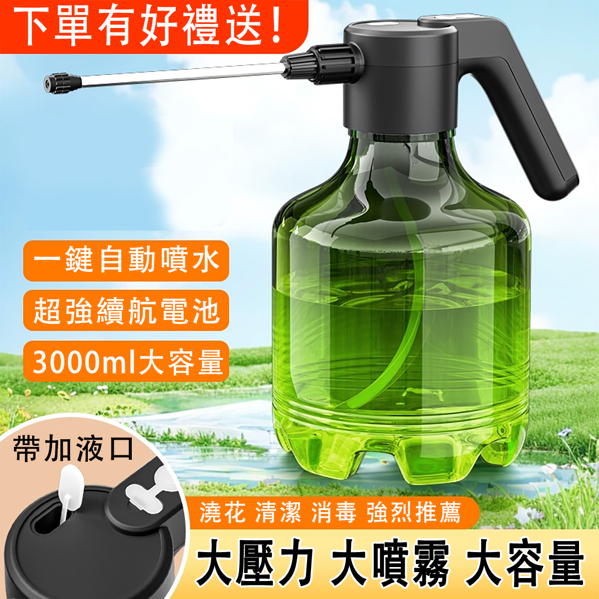 4分鐘前【僅限今日】智慧電動多功能噴壺 下單更有四重好禮贈送! - 【升級款】電動噴壺(續航10小時)+充電線+加長桿